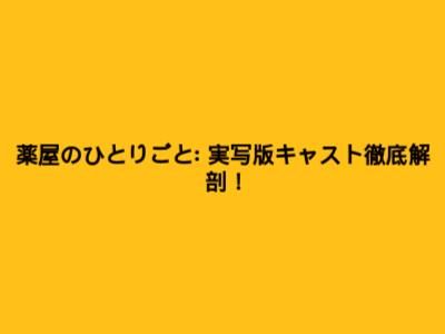薬屋のひとりごと: 実写版キャスト徹底解剖!