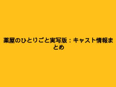 薬屋のひとりごと実写版:キャスト情報まとめ