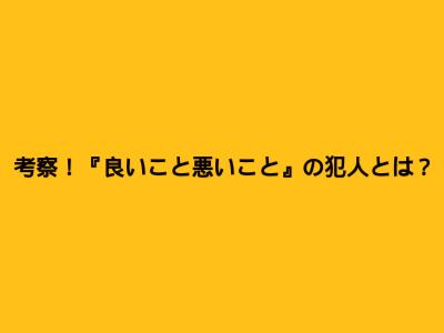 考察!『良いこと悪いこと』の犯人とは?
