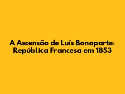 A Ascensão De Luís Bonaparte: República Francesa Em 1853