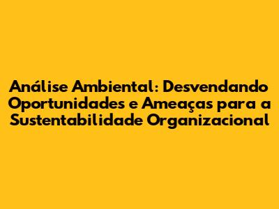 Análise Ambiental: Oportunidades E Ameaças Para A Sustentabilidade