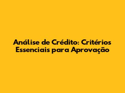 Análise De Crédito: Critérios Essenciais Para Aprovação
