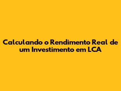 Calculando O Rendimento Real De Um Investimento Em LCA