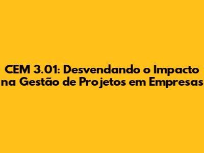 CEM 3.01: Impacto Na Gestão De Projetos Em Empresas