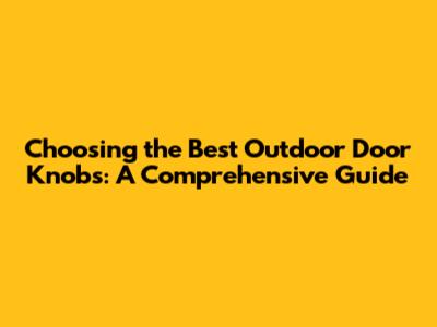 Choosing The Best Outdoor Door Knobs: A Comprehensive Guide