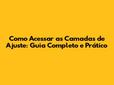 Como Acessar As Camadas De Ajuste: Guia Completo E Prático