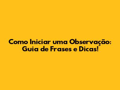 Para iniciar uma observação de forma eficaz, é importante ter em mente algumas frases e estratégias que podem te ajudar a capturar a atenção do seu público desde o início. Vamos explorar algumas opções que podem ser adaptadas a diferentes contextos e situações: