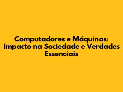 Computadores E Máquinas: Impacto Na Sociedade E Verdades Essenciais