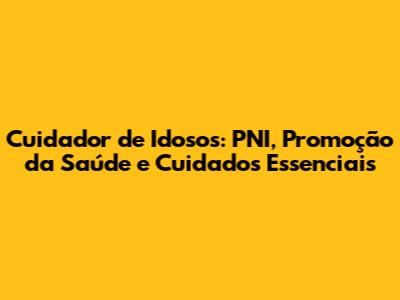 Cuidador De Idosos: PNI, Promoção Da Saúde E Cuidados Essenciais