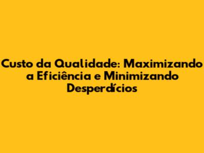 Olá, pessoal! Vamos mergulhar no mundo fascinante do Custo da Qualidade! Se você é como a maioria das pessoas, provavelmente já ouviu falar sobre ele, mas talvez não tenha ideia de como ele pode transformar a maneira como sua empresa opera. Neste artigo, vamos desvendar tudo sobre o Custo da Qualidade, explorando suas nuances e mostrando como a implementação correta pode levar a resultados incríveis. Preparem-se para descobrir como maximizar a eficiência e minimizar desperdícios!