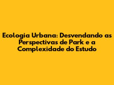 Ecologia Urbana: Perspectivas De Park E A Complexidade Do Estudo