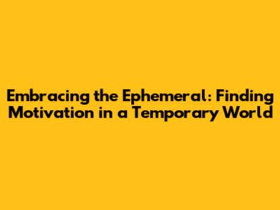 Embracing The Ephemeral: Finding Motivation In A Temporary World