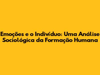 Emoções E O Indivíduo: Uma Análise Sociológica Da Formação Humana