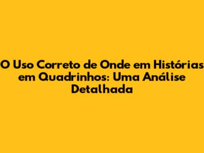 Entenda O Uso Correto De 'Onde' Em Histórias Em Quadrinhos