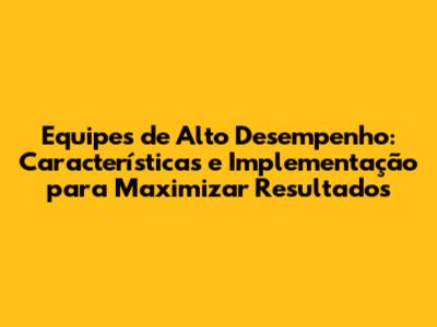 Equipes De Alto Desempenho: Características E Implementação