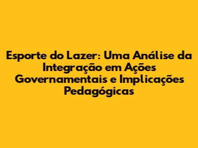 Existem inúmeros exemplos de ações governamentais que demonstram a integração do esporte do lazer e sua relação com a pedagogia. Programas como o Segundo Tempo, criados pelo governo federal, oferecem atividades esportivas e educativas para crianças e adolescentes em situação de vulnerabilidade social. Esses programas utilizam o esporte como ferramenta para promover a inclusão, a cidadania e o desenvolvimento pessoal. A pedagogia é essencial nesses programas, pois os professores e monitores utilizam metodologias pedagógicas para ensinar valores, desenvolver habilidades sociais e promover a reflexão crítica sobre o esporte e a sociedade.