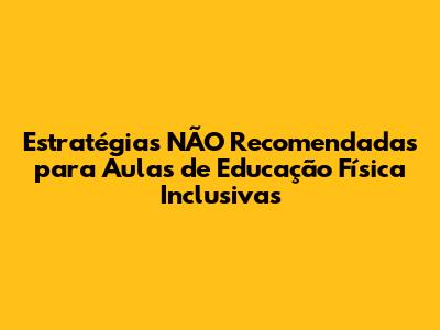 Estratégias NÃO Recomendadas Para Aulas De Educação Física Inclusivas