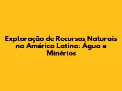 Exploração De Recursos Naturais Na América Latina: Água E Minérios