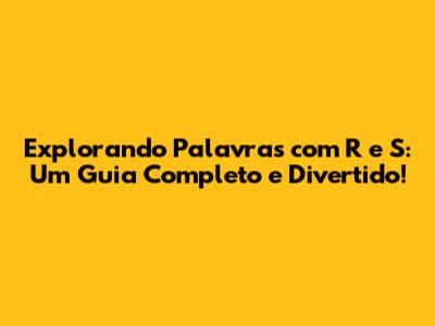 Explorando Palavras Com 'R' E 'S': Um Guia Completo E Divertido!