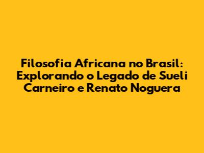 Filosofia Africana No Brasil: Sueli Carneiro E Renato Noguera