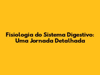Fisiologia Do Sistema Digestivo: Uma Jornada Detalhada