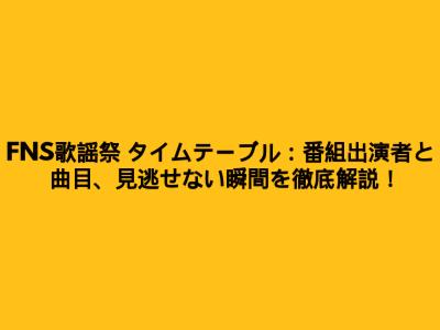 FNS歌謡祭 タイムテーブル:番組出演者と曲目