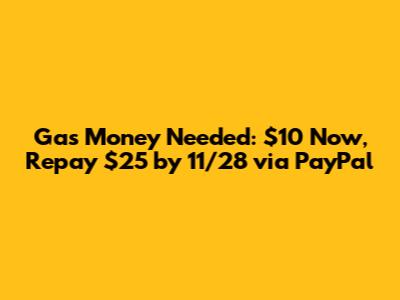 Gas Money Needed: $10 Now, Repay $25 By 11/28 Via PayPal