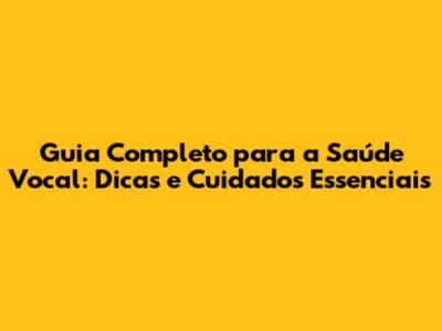 Guia Completo Para A Saúde Vocal: Dicas E Cuidados Essenciais