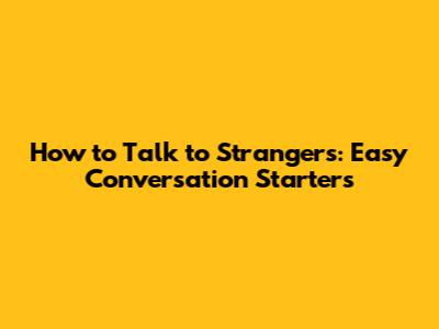 How To Talk To Strangers: Easy Conversation Starters
