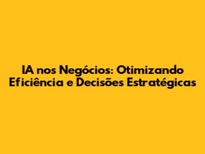 IA Nos Negócios: Otimizando Eficiência E Decisões Estratégicas
