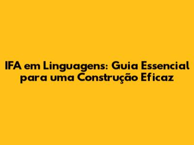 IFA Em Linguagens: Guia Essencial Para Uma Construção Eficaz