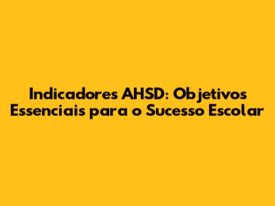 Indicadores AHSD: Objetivos Essenciais Nas Escolas