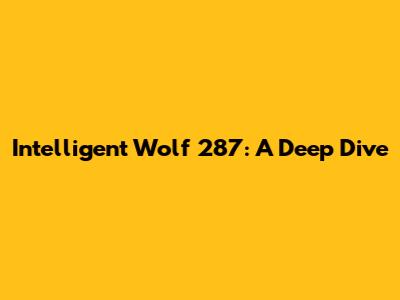 Hey guys, let's dive deep into what makes Intelligent Wolf 287 such a hot topic! If you've been hearing buzz about this particular subject and wondering what all the fuss is about, you've come to the right place. We're going to break down everything you need to know, from the basics to the nitty-gritty details. Think of this as your ultimate guide to understanding Intelligent Wolf 287. We'll explore its origins, its significance, and why it matters to so many people. Whether you're a seasoned pro or just dipping your toes in, this article aims to provide clear, valuable insights. So, buckle up and let's get started on unraveling the mystery behind Intelligent Wolf 287!