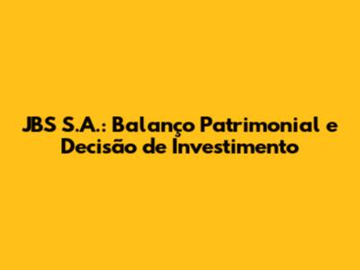 JBS S.A.: Balanço Patrimonial E Decisão De Investimento
