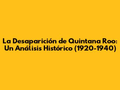 La Desaparición De Quintana Roo: Un Análisis Histórico (1920-1940)