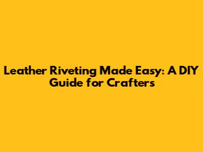 Leather Riveting Made Easy: A DIY Guide For Crafters