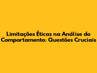 Principais Limitações Éticas na Análise do Comportamento