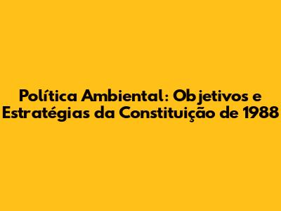 Política Ambiental: Objetivos E Estratégias Da Constituição De 1988