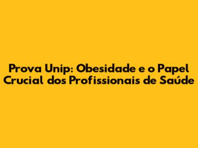 Prova Unip: Obesidade E O Papel Crucial Dos Profissionais De Saúde