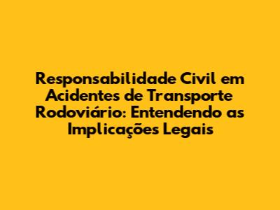 Responsabilidade Civil Em Acidentes De Transporte Rodoviário