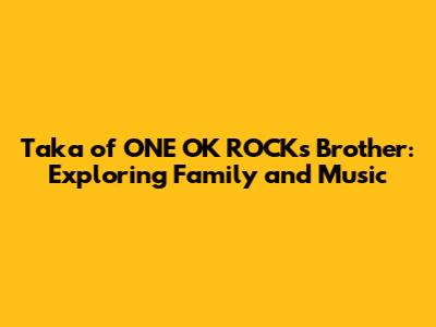 Taka Of ONE OK ROCK's Younger Brother: Unveiling The Family Ties