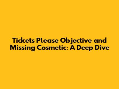 First things first, what exactly is the "Tickets Please" objective, and what are we supposed to get from it? Generally, in games, objectives are designed to give players a specific goal to achieve. These objectives often come with awesome rewards, like cosmetic items to customize your character or weapons, currency to purchase in-game items, or even experience points to level up. When the rewards don't show up, it can feel like a punch in the gut! The specific details of the "Tickets Please" objective, including the steps to complete it and the expected cosmetic reward, can vary depending on the game. It is always a good idea to double-check the in-game descriptions or any available guides to make sure you have the right steps.