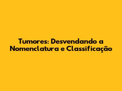 Nomenclatura dos Tumores: A Chave para Entender