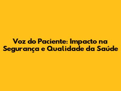 Voz Do Paciente: Impacto Na Segurança E Qualidade Da Saúde