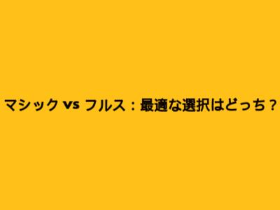 マシックとフルス、結局どっちを選ぶべき?あなたのライフスタイルに合わせた選び方!