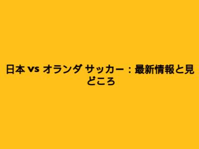 日本 Vs オランダ サッカー:最新情報と見どころ