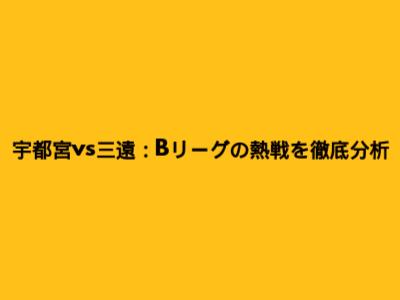 宇都宮vs三遠:Bリーグの熱戦を徹底分析
