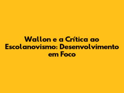 Wallon E A Crítica Ao Escolanovismo: Desenvolvimento Em Foco